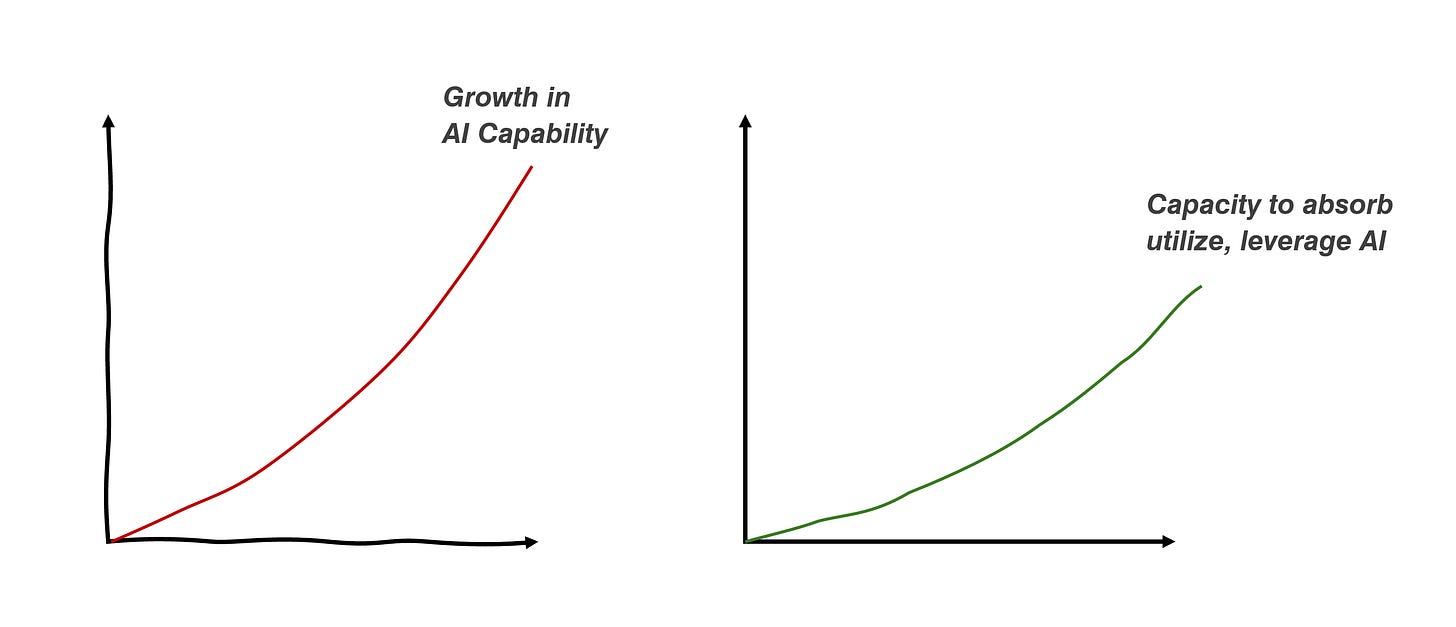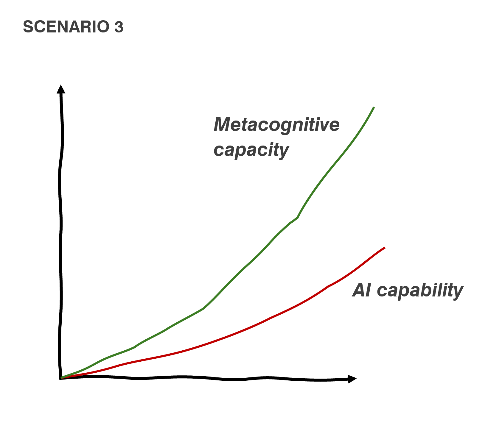 Growth in “capacity to leverage AI” is in our hands. It is driven, not by AI skills (which are easily learnt) but the deeper metacognitive skills needed to leverage AI (the way we think, the way our thought models are constructed, the way we translate information overload into meaningful action, etc.)